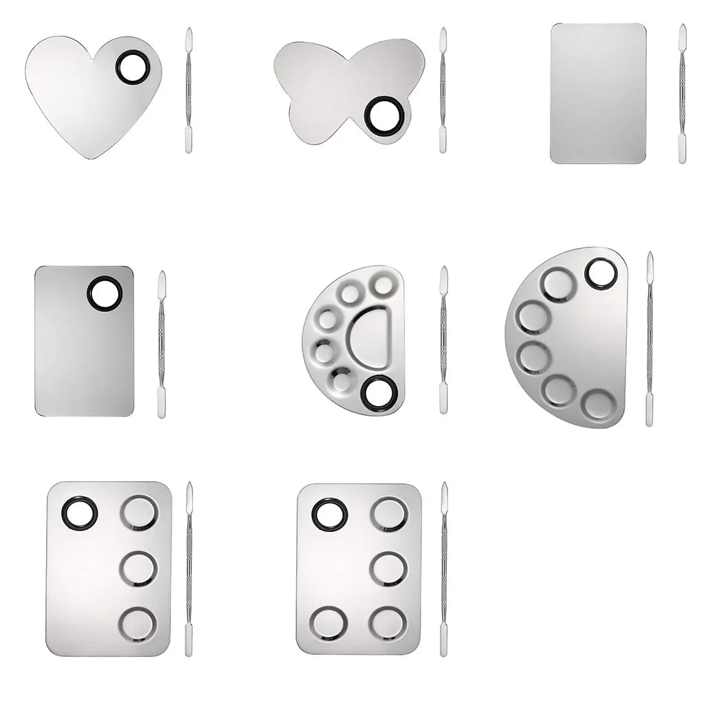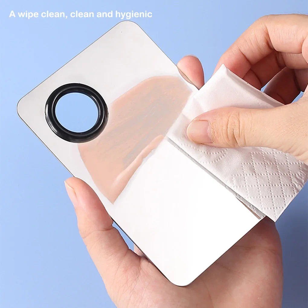 With Holes: This stainless steel color palette has round holes, which can be used to put the cosmetics you need to color.